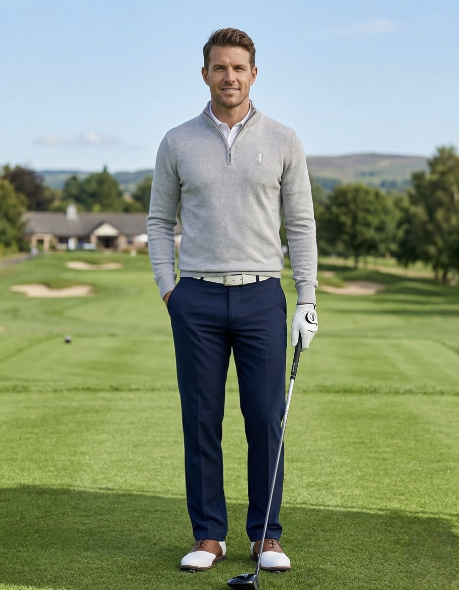 Jersey golf de caballero con cremallera, mezcla de lana merino de alta calidad con acrilico.